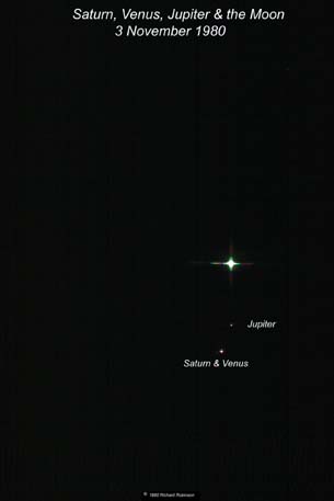 This picture shows the position of Saturn, Venus, Jupiter and the Moon on the morning of 3 November 1980. |