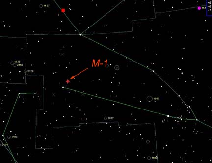 Size: 6 x 4 arcmin RA: 05h 34m 30.0s Dec: 22 d 01m 00s |