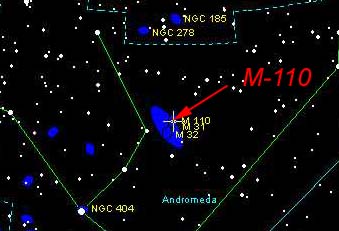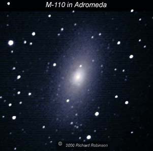 M-110 is a companion galaxy to the Great Spiral M-31. It is a member of the local group of galaxies and its central core is bright enough to be seen in a 90 mm scope. |