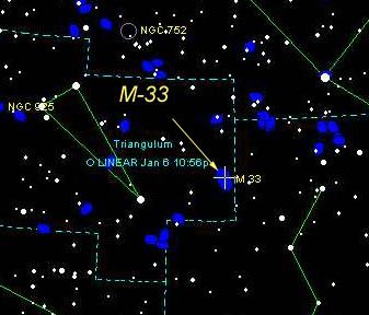is about 15 degrees down and to the left of M-31. It too is a large