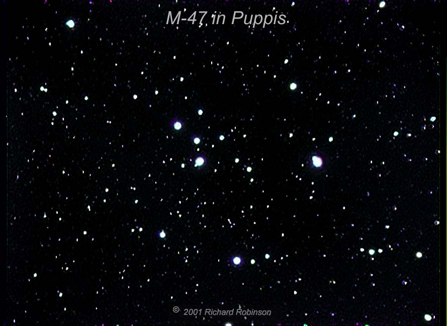 This image was taken using the Meade f3.3 focal reducer on my 8" f10 LX 200.    I finally obtained an adapter to allow me to couple the MX-5C to the Meade f3.3 focal adapter using the T-4 adapter rings supplied with the focal reducer.  This allowed me to achieve a focal ratio of 3.3.  The horizontal pixel scale is 3.4 arcsec per pixel.   The image is a single 10 minute exposure autoguided with the STAR 2000.  They were first color converted with in AstroArt and then further processed  in Photoshop.   Total exposure is 10 minutes.  Click here to go back.