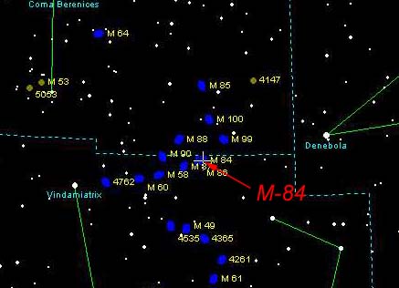 is an elliptical galaxy in the Virgo cluster. M-84 and M-86 are galactic