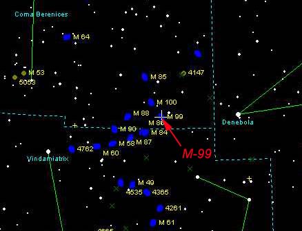 is a member of the Virgo Cluster of galaxies. It is about 7 degrees