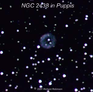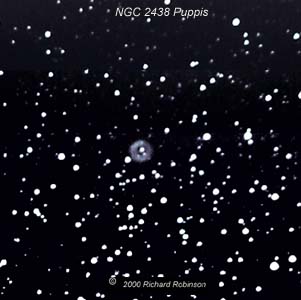 | NGC 2438 is a nice planetary located within the open cluster M-46. It is small and dim, but you should be able to see it with an 8" scope. Maybe a 6 inch if you are under dark skies. | |