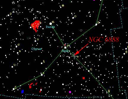 | NGC 6888 is a large object with low surface brightness. You will probably need a 8"-10" scope to see it because of the low surface brightness. Most visual reports I've seen were based on observations with a 12 inch or larger scope. | |