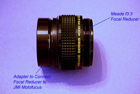 photo shows the Meade f3.3 focal reducer attached to the JMI Motofocus
