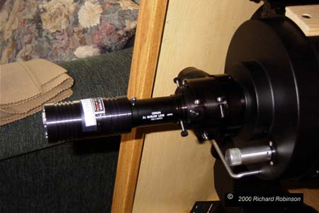 | Here are some photos of various optical configurations I've used. It's not a complete list because there are just too many combinations to show, but this will give you an example of what to expect. The MX-5C is basically an eyepiece camera so wherever you can use an eyepiece, you can use the camera. You do need to make sure that the cable for the camera will not get caught on any area of the scope mount. The CCD will also hit the bottom of the LX 200 base at high declinations. |