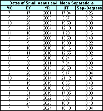 On the dates on minimum Moon separation, Venus and the Moon should be within