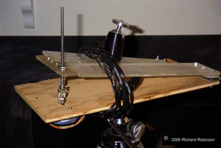The two arm model gives slightly better tracking than a single arm model The drive uses a stepper motor to turn the driving screw. I've used a surplus universal joint to connect the motor to the drive screw. |