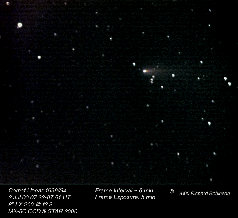 | Animation of Comet Linear C/1999 S4 on 3 Jul 2000 |