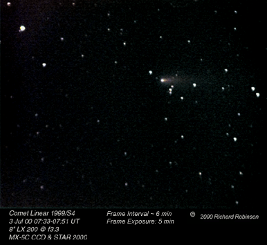 | Animation of Comet Linear C/1999 S4 on 3 Jul 2000 |