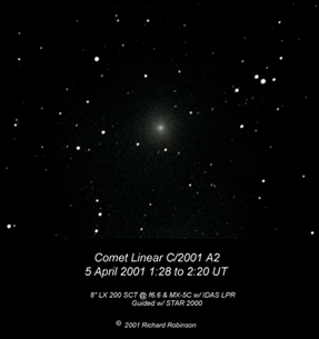 This is a short animation made from two 10 minute exposures There is not much of a tail visible in this image. The brighter stars in the image are magnitude 10.2.