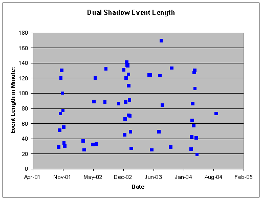 The chart shows that the dual shadow events tend